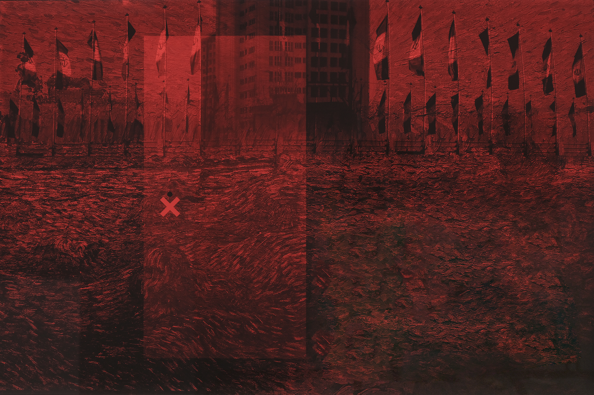 The ZERO POINT collection is constructed of three intermingled layers: the remnants of traditional images (the painting), which like its first spell represents the phenomena itself; A technical image that utilizes a semiotic system that is an indirect derivative of scientific texts; and